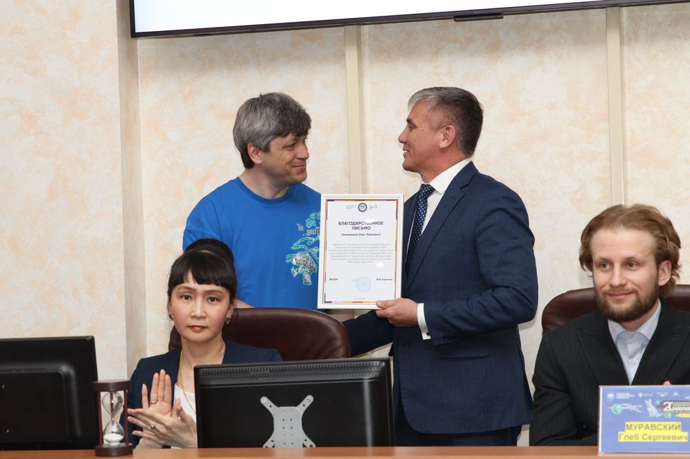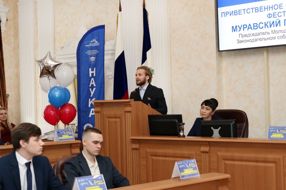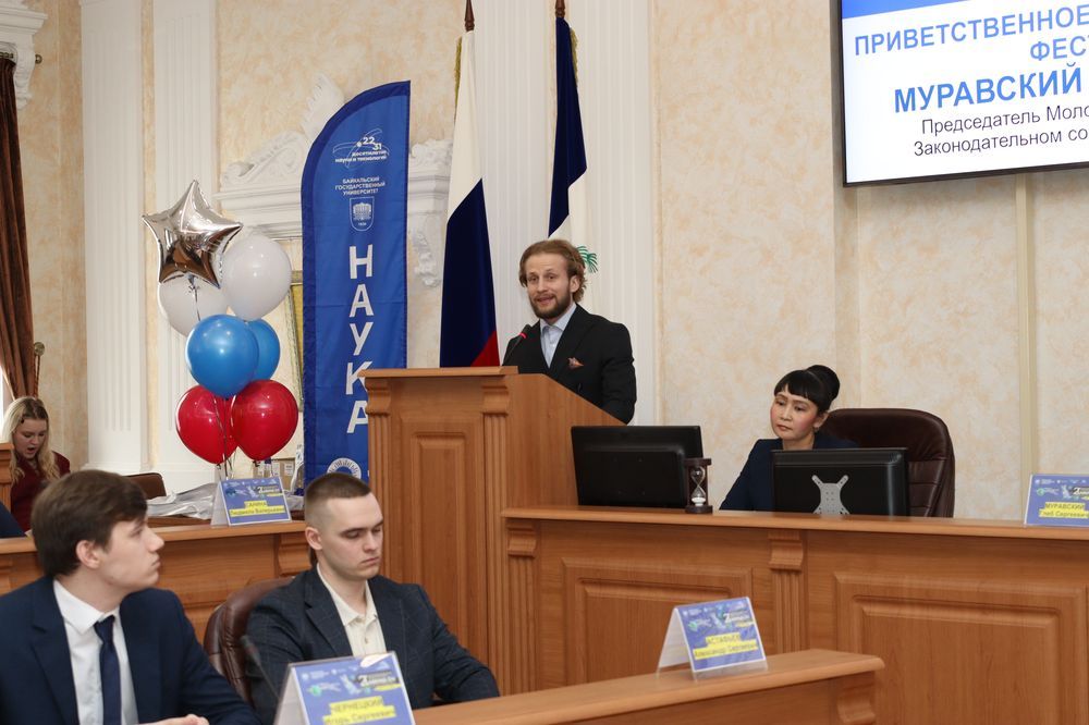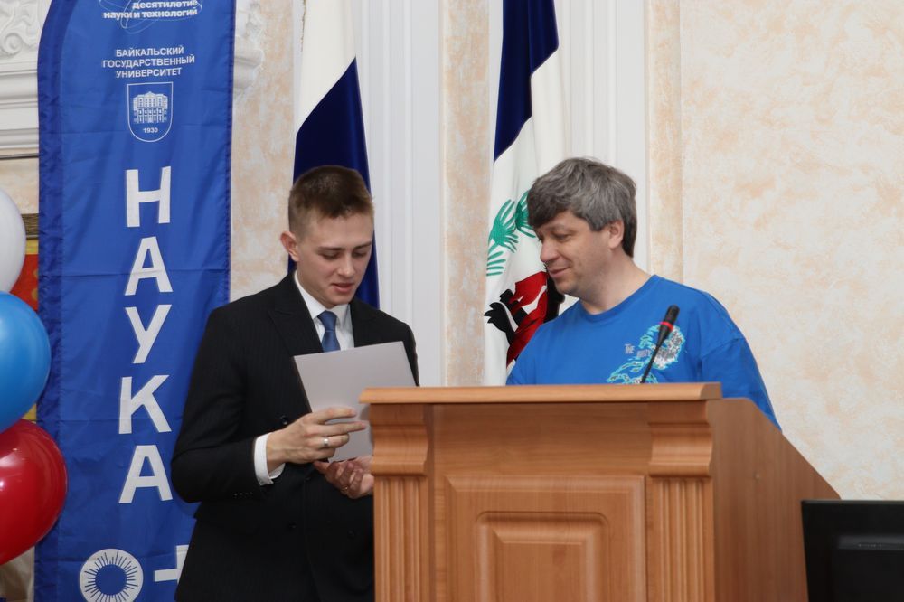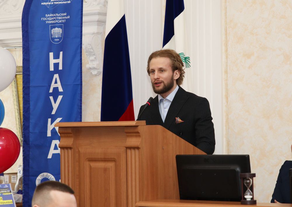 К поздравлениям присоединился заместитель министра по молодежной политике Иркутской области Илья Иванов. Он вспомнил свои первые шаги в науке, которые делал именно в стенах БГУ, и рассказал о поступлении в аспирантуру. Еще один спикер — магистрант БГУ, председатель Молодежного парламента при Законодательном собрании региона Глеб Муравский — добавил, что в любом деле самое важное — не бояться сделать первый шаг. Еще один выпускник БГУ, а ныне генеральный директор стартап-студии ИРНИТУ Сергей Маяренков в своем приветственном слове отметил масштабную работу вуза в области инноваций. Он вручил дипломы участникам и победителям региональной выставки студенческих стартап-проектов из БГУ, а их руководителям — благодарственные письма. Также Сергей Маяренков передал приветственный адрес ректору БГУ Олегу Грибунову от ректора ИРНИТУ Михаила Корнякова.