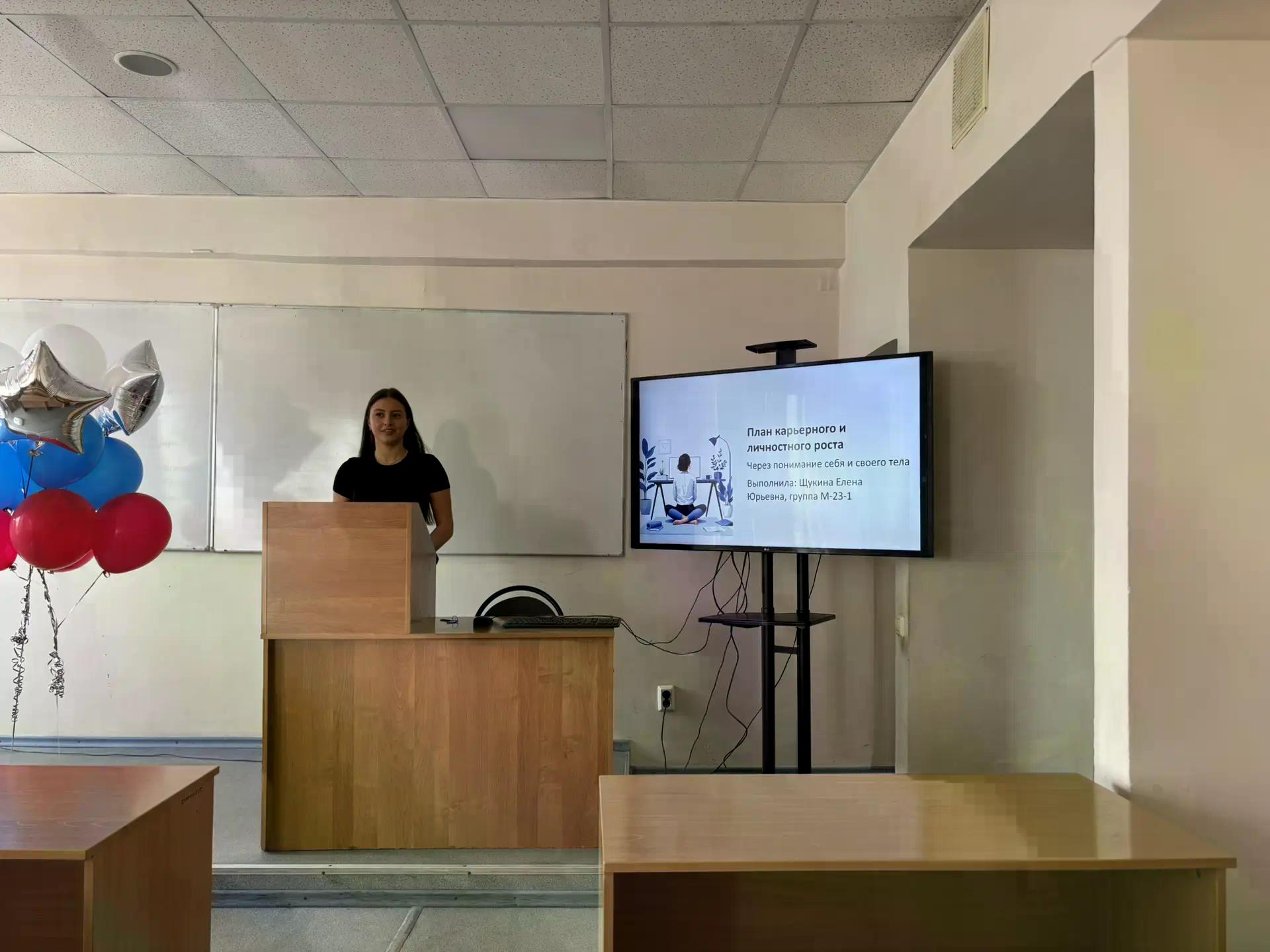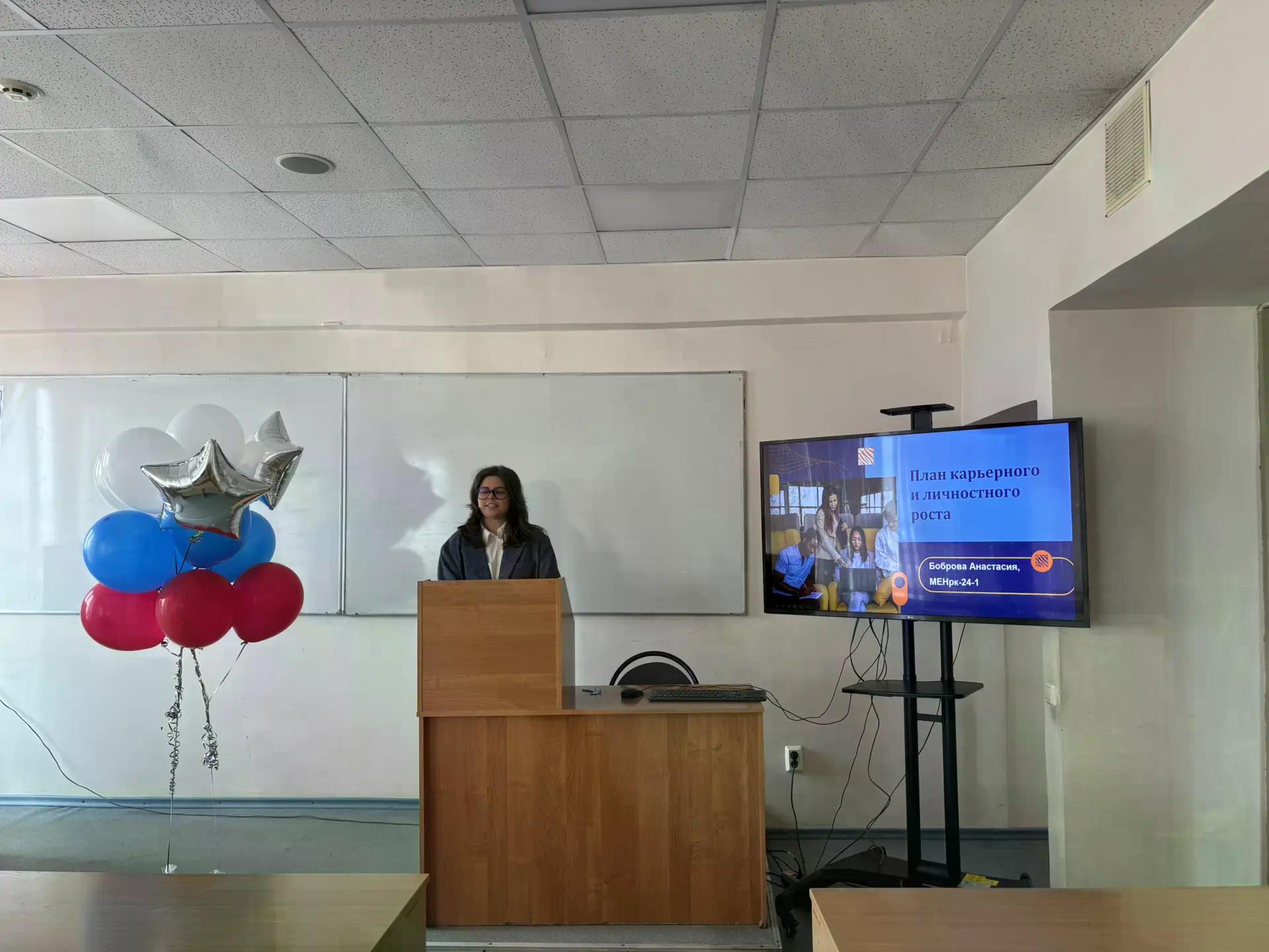 В рамках IV Всероссийского Байкальского молодежного фестиваля НАУКА 0+, 1 апреля 2026 г. в ауд. 3-902 прошло мероприятие «План карьерного и личностного роста». Восемь студентов представили презентации, где описывали свое текущее состояние и кратко- и долгосрочные планы по карьере и личной жизни. Все выступления были интересными и разнообразными с точки зрения взглядов на карьерный и личностный рост. После завершения выступлений были подведены итоги мероприятия. Лучшей была признана презентация Кузаковой Валерии из группы МЕНрк-24-1, второе место получила презентация Дамбаева Абиды из группы МЕНрк-24-1, а третье место разделили Талашманов Алексей и Тимакин Семён. Оба они представляют группу М-23-1.